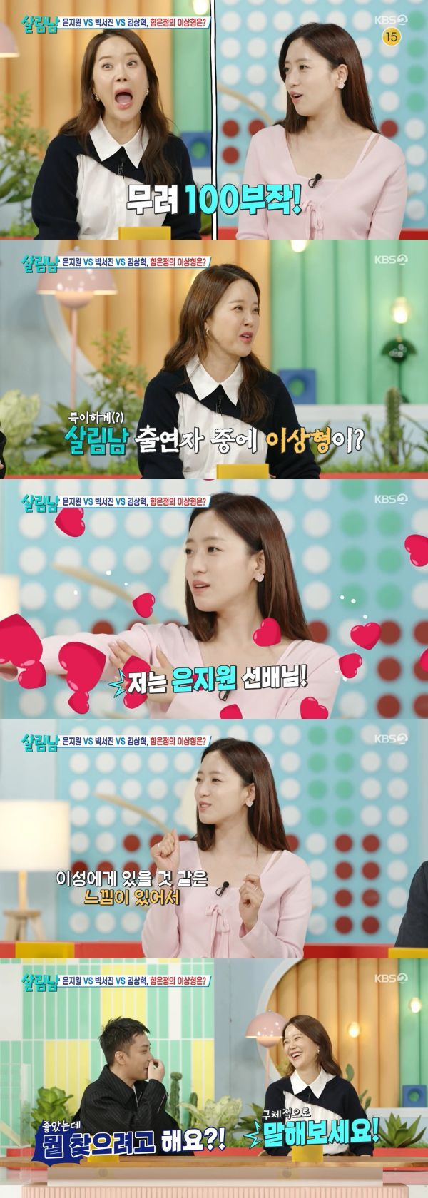 이어 백지영은 함은정에게 "'살림남' 출연자 중에 이상형이 있다는데?"라고 직설적인 질문을 던졌다. 이에 함은정은 망설임 없이 "있다"고 답한 뒤, 예상 밖의 인물인 "저는 은지원 선배님"이라고 밝혀 스튜디오를 술렁이게 했다.