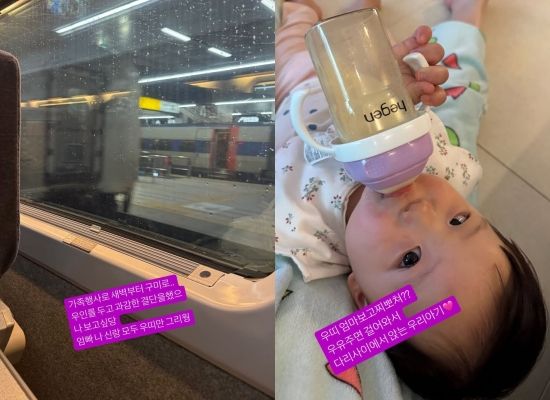 집에 돌아와 아들과 상봉한 뒤에는 "우띠 엄마 보고 싶었지? 우유 주면 걸어와서 다리 사이에서 앉는 우리 아기"라며 사랑스러운 아들의 모습을 카메라에 담았다.