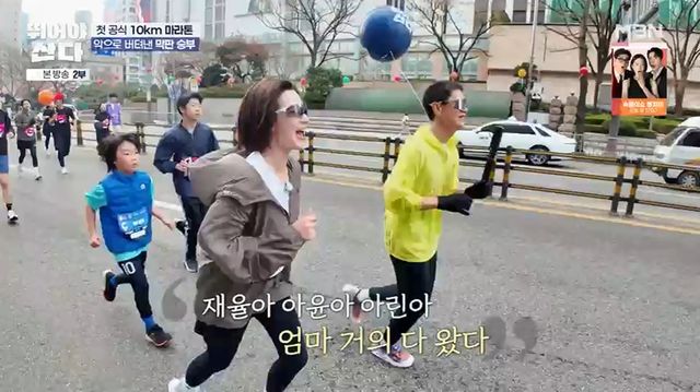 화이팅을 외친 율희는 "재율아 아윤아 아린아 엄마 거의 다 왔다"고 외치며 악착같이 뛰었다. 그는 "충분히 가능하다 너도 할 수 있어"라고 말했따.