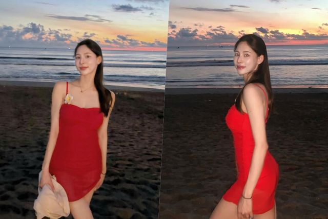 공개된 사진 속 이나연은 레드 미니 원피스를 입고 발리 해변가에서 일몰을 즐기고 있는 모습이다. 아름다운 일몰보다 돋보이는 화려한 미모로 눈길을 끈 이나연은 글래머러스한 S라인 옆태까지 자랑해 보는 이를 매료했다.