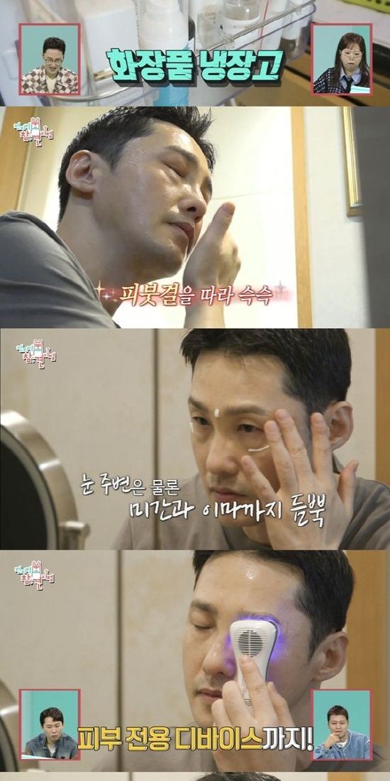 황동주는 피부 관리에도 진심인 모습으로 놀라움을 자아낸다. 그는 2대의 화장품 전용 냉장고에 화장품과 팩을 각각 따로 보관하고, 화장대에는 피부 관리 디바이스가 가득하다. 스킨, 세럼, 아이크림 등 7단계에 이르는 기초 화장품을 꼼꼼하게 바르고, 마지막에는 디바이스로 피부 관리를 마무리한다.