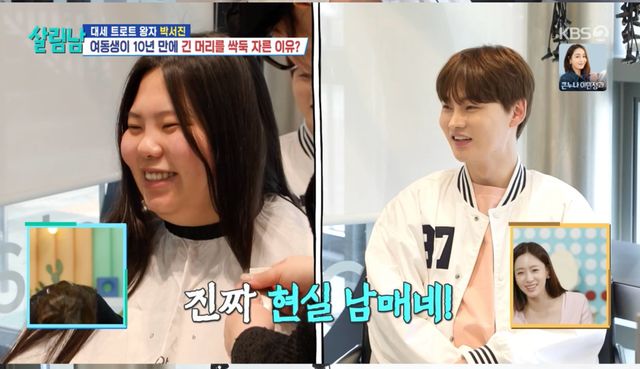 이어 10년 만의 단발을 앞두고 걱정하는 박효정에게 "머리카락을 만져보니까 많은 아픔이 느껴진다"라는 말과 함께 엉뚱한 상황극을 펼치며 현실 남매 다운 유쾌한 케미도 잊지 않았다.