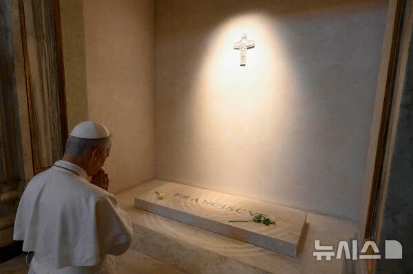 신임 교황 레오 14세가 전임자인 프란치스코 교황의 무덤을 찾았다.