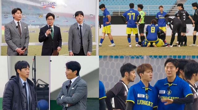 하지만 그 우정도 경기장 위에서는 잠시 보류. 경기 시작과 함께 양 팀은 거친 몸싸움을 불사하는 팽팽한 접전을 벌인다. 이와 관련 공개된 사진에서는 이신기, 이용우, 이지훈 등 양 팀 에이스들이 그라운드 위에서 쓰러진 모습이 포착되어 더욱 궁금증을 모은다.
