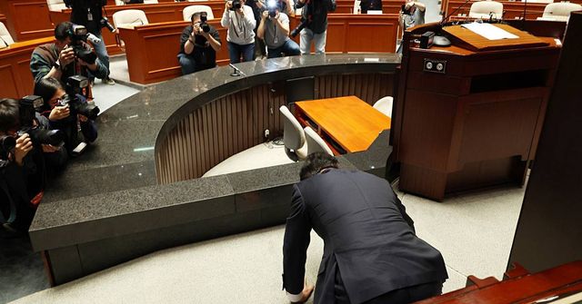 김문수 국민의힘 대통령 후보가 11일 오후 서울 여의도 국회에서 열린 의원총회에서 “국민의힘 대선 후보로서 나 역시 더 넓게 품지 못했던 점에 대해 이 자리에서 진심으로 사과드린다”며 의원들을 향해 큰절을 하고 있다 / 뉴스1