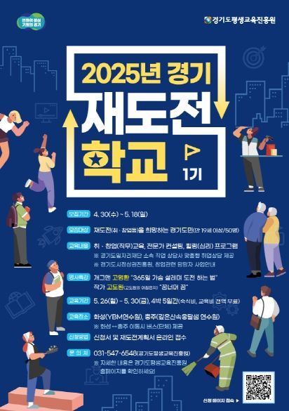 작년 경기재도전학교의 성공에 이어, 올해는 4기수까지 확대 모집한다. 힐링과 심리치유를 강화한 교육으로 4박 5일간 진행되며, 교육은 전액 무료이다. 특히 올해부터는 경기도일자리재단과 경기도시장상권진흥원과의 협업을 통해 취업 상담과 창업 지원 연계도 함께 제공된다. 참여 신청은 오는 18일까지 경기도평생교육진흥원 누리집(gill.or.kr)에서 할 수 있다.