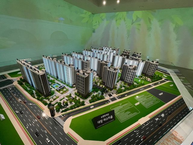 DL이앤씨가 경기 부천시에 조성하는 ‘e편한세상 대장 퍼스티움’ 주택전시관을 지난 9일 개관했다. 사진은 견본주택에 마련된 대형모형. = 박선린 기자