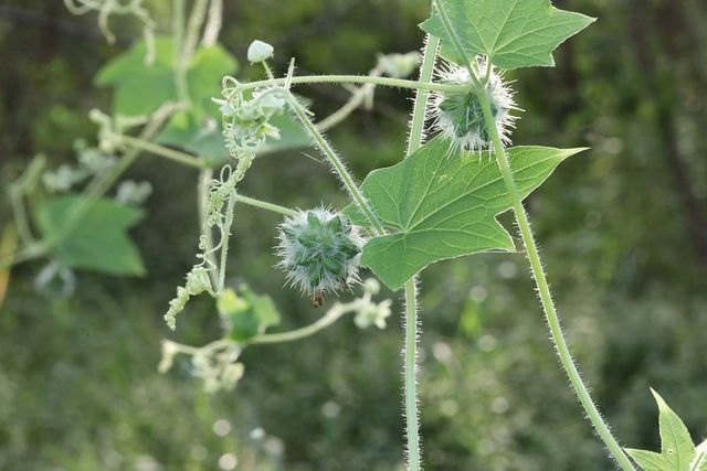 줄기는 4~8m까지 자란다. 햇빛을 쫓아 12m까지 뻗는다. 덩굴손은 3~4갈래로 갈라져 다른 물체를 감는다. 잎은 손바닥 모양이다. 5~7갈래로 얕게 갈라진다. 지름은 8~12cm다. 잎은 부드럽지만 줄기와 열매에는 날카로운 가시가 있다. 이 가시는 옷을 뚫는다. 꽃은 6~9월에 핀다. 수꽃은 누런 흰색이다. 총상꽃차례에 달린다. 암꽃은 연한 녹색이다. 머리 모양의 꽃차례를 이룬다. 열매는 9~10월에 익는다. 흰 가시로 덮인 별사탕 모양이다. 한 그루에서 2만 5천 개 이상의 씨를 만든다. 번식력이 강하다.