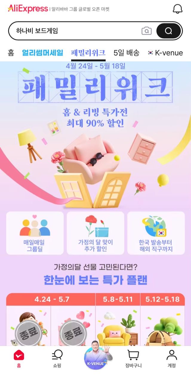 ‘패밀리위크’ 프로모션 정보는 알리익스프레스 모바일 앱에서 확인할 수 있다.