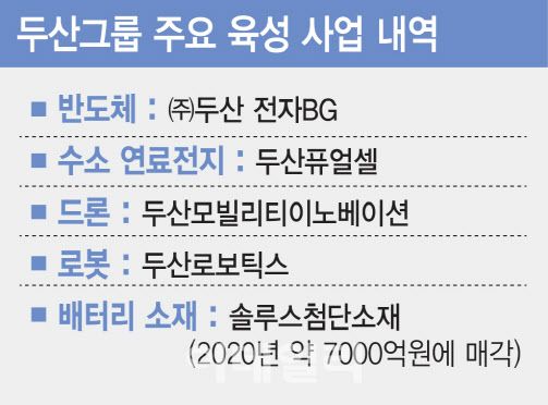 두산그룹은 현재 수소·반도체·로봇 등을 핵심 사업으로 점찍고 적극적으로 투자하고 있다. 두산밥캣 등 건설기계에 그룹 대부분의 매출이 집중된 사업구조를 다변화하고 미래 먹거리를 육성하기 위해서다. 지난해 말에는 두산밥캣·두산에너빌리티·두산로보틱스 간 분할·합병 계획이 무산된 뒤 두산모빌리티이노베이션(DMI)에 퓨얼셀파워BU 사업을 양도하며 모빌리티 사업 확장에 나섰다.