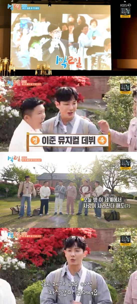 멤버들은 김종민의 결혼식 말고도 축하할 일이 있다며 이준의 뮤지컬 데뷔 소식을 전했다.