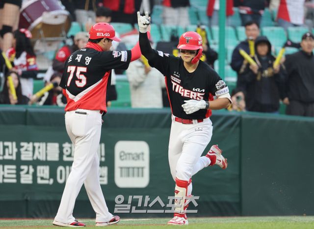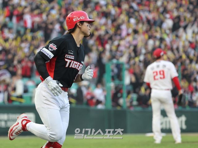 타격 직후 홈런임을 직감할 수 있을 정도로 잘 맞은 타구. 4회 1사까지 노히트 노런으로 순항하던 김광현에게 빼앗은 팀의 첫 번째 안타였다. 김도영의 홈런은 지난달 26일 LG 트윈스전 이후 처음이자 시즌 2호.