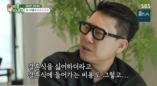 이상민은 프러포즈에 대해서도 “일주인 전 혼인신고를 하기로 하며 이야기를 했다. 서로 마음이 편한데 내게 ‘그럼 난 프러포즈도 안 받고 결혼하는거네’ 라더라. 거기에 내가 뭐라고 하겠나. ‘그렇네’라고 했다”라고 말해 서장훈과 김준호를 당황시켰다.