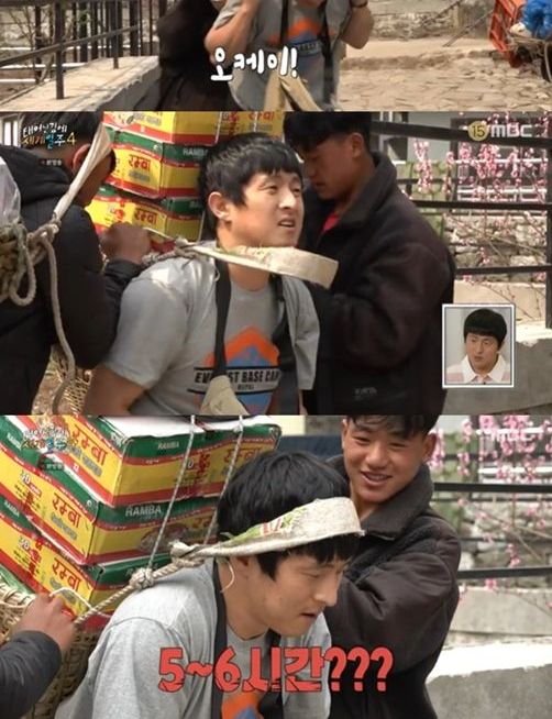 이에 30kg에 달하는 무거운 짐을 든 코리안 셰르파 기안84는 "어깨끈이 없어 중심을 잡기 힘들다"라고 말하며 어려움을 토로했고, "도움이 되고 싶은데"라며 열심히 노력하는 모습을 보였다.