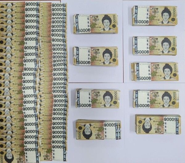 '관봉권'은 권종별로 100장 묶음과 1000장 묶음으로 나뉩니다. 5만원짜리 100장 묶음이면 500만원이 되고, 1000장 묶음이면 5000만원이 됩니다. 1만원, 5000원, 1000원 짜리 묶음도 100장과 1000장 형태로 가능합니다. 압수된 전 씨의 돈뭉치는 관봉권 중 가장 큰 금액이 되는 셈이죠.