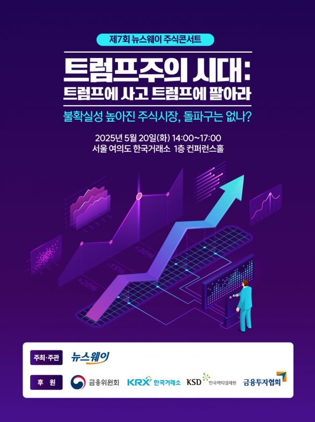 뉴스웨이는 '동학개미운동'의 원년격인 2020년부터 국내외 증시에 투자 중이거나 투자에 관심이 많은 개인투자자들을 위해 올바르고 건강한 투자전략을 전달하고자 노력하고 있습니다. 그 일환으로 매년 국내 주요 증권사·자산운용사·투자전문가를 모시고 성공 투자를 위한 전략을 듣을 수 있는 '주식콘서트'를 개최 하고 있습니다.