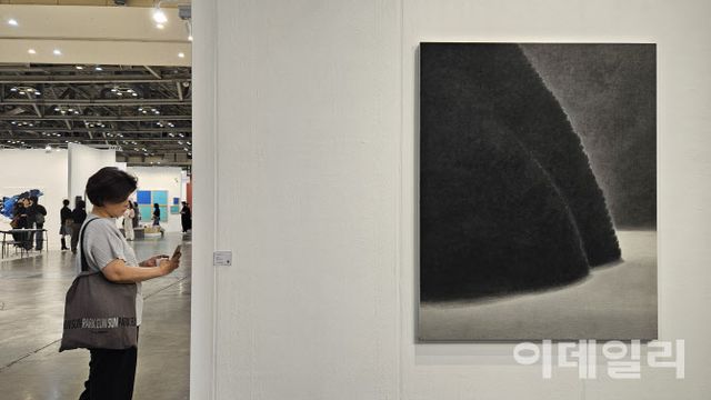 그렇다고 무조건 ‘죽 쑨 시장’은 아니다. 불경기와는 무관하게 시장을 움직이는 묵직한 작가와 작품은 늘 있었으니까. 중견작가 김보희(73), 이배(69)는 역시 첫날부터 ‘남달랐다’. 갤러리현대는, 시그니처인 초록을 거둔 자리에 짙은 무채색을 쓴 신작 등을 낸 김보희의 ‘투워즈’(Towards 2025) 12점을 모두 팔아치웠다. 150호(128×237㎝) 2억 6000만원, 100호(162×130㎝) 1억 4000만원 등 전체 판매액은 10억원 이상이다.