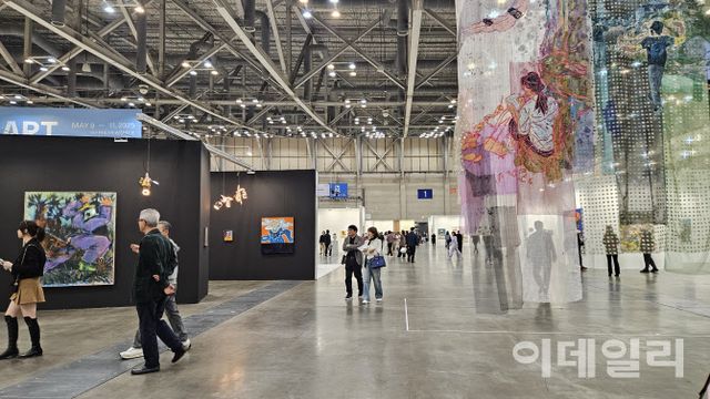 [부산=이데일리 오현주 문화전문기자] “영 소식이 없네요. 개시도 못 했어요.” 서울에서 내려간 한 갤러리 대표가 멋쩍은 웃음으로 인사를 대신한다. 대단한 기대까지야 했겠는가마는 그래도 ‘설마’ 하지 않았을까. 게다가 첫날이다. 일반인에 앞서 VIP들이 먼저 한 바퀴 돌며 눈독 들인 작품에 ‘빨간딱지’ 하나씩 붙이는 그날이 아닌가. 그런데 웬걸. 오후 2시 개막 이후 당일 영업이 끝나는 시간까지 장내는 한산하기만 했다. 미술장터라기보다 어디 잘 꾸며진 화랑가를 둘러보는 듯했으니 말이다. 북적대는 인파에 어깨를 부딪치는 대신 쾌적한 공기 속에 아트숲을 산책하는 기분까지 들 정도였으니. 이 분위기는 일반 관람객에게 오픈한 다음 날까지도 이어졌다.