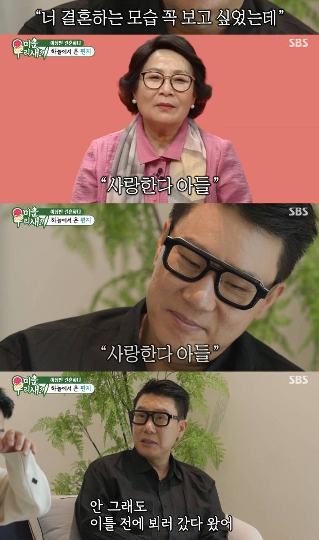 또한 "그대신 항상 엄마가 우리 아들이랑 너희 부부 곁에서 평생 지켜줄게 사랑한다 아들"이라고 말을 남겼다.