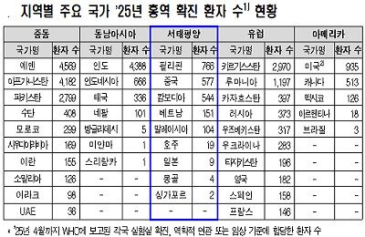 지역별로는 중동(1만 2,867명), 아프리카(1만 623명), 유럽(6,841명), 동남아시아(5,498명) 순으로 많은 환자가 발생했다.