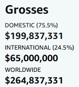 월드와이드 2억6천만불 넘음