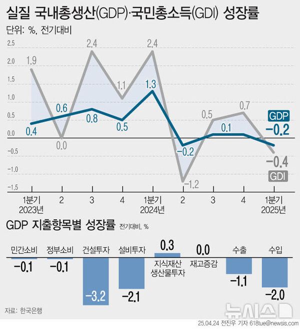 국내 외 기관들이 우리나라의 올해 경제성장률 전망치를 속속 낮추고 있다. 올해 1분기 -0.2%로 깜짝 역성장 거둔데 다 트럼프 관세 정책에 따른 수출 타격이 우려되면서다.