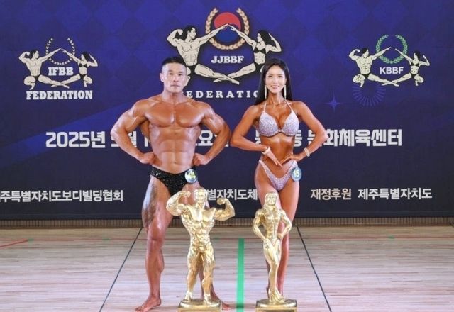 [한라일보] 유창현과 김민서(제주자치도보디빌딩협회)가 2025년 제주 최고 몸짱에 올랐다.