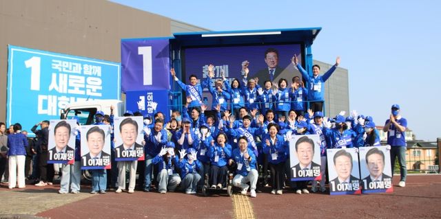제21대 대통령선거 더불어민주당 진짜 대한민국 제주도당선거대책위원회(이하 이재명 제주선대위)는 이날 오전 8시 마리나호텔사거리에서 출정식을 열어 유권자들에게 지지를 호소했다.
