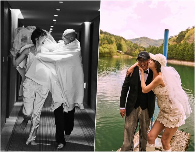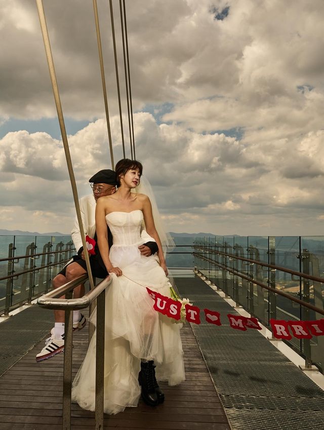 최여진은 모델 출신다운 힙한 분위기로 웨딩 화보를 완성해서 눈길을 끌었다. 또한 두 사람의 만남의 장소가 된 서핑장을 배경으로는 볼 뽀뽀를 선보이는 등 다정한 스킨십으로 눈길을 끌었다.