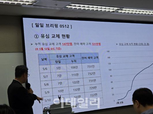 임봉호 SKT MNO사업부장은 “교체 문자를 받은 고객의 50~60%만 매장으로 방문하고 계셔서, 교체량의 100%가 아니라 120~150%로 안내해서 가지고 있는 유심 물량 소진으로 안내하고 있다”고 설명했다.