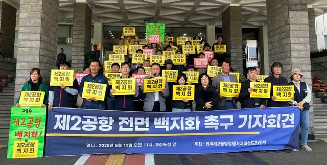그러면서 도민회의는 "오늘부터 제21대 대통령 선거 공식 선거운동이 시작됐다. 제2공항은 경제적으로도 국가나 지역사회에 아무런 도움이 되지 않는다"면서 "제주의 항공 수요가 줄어들 것으로 예상되는 상황에서 국가 예산을 낭비하고, 적자 공항으로 전락시킬 것이다. 안전의 측면에서도 제2공항 건설계획은 중단돼야한다. 제2공항 건설계획 백지화야말로 제주도민을 위한 최고의 공약이다"라고 강조했다.