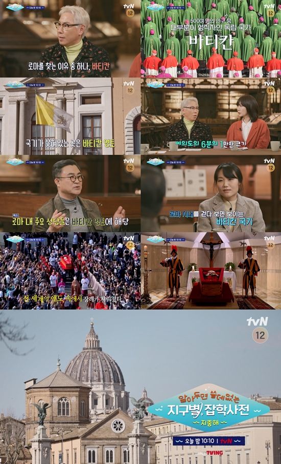 12일 tvN '알아두면 쓸데없는 지구별 잡학사전: 지중해'(이하 '알쓸별잡: 지중해') 7회에서는 지중해 항해의 시작점이었던 이탈리아 로마로 다시 돌아간 지구별 여행자들의 모습이 그려진다. 선공개된 영상엔 로마에서 여권 없이 걸어서 갈 수 있는 또 다른 나라가 있다고 밝혀 흥미를 자아낸다.