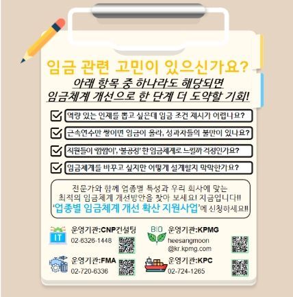 고용노동부는 「업종별 임금체계 개선 확산 지원사업」에 참여할 중견·중소기업을 모집 중이다. 이 사업은 사업장 여건에 맞는 직무·성과 기반의 합리적인 임금체계를 업종 단위로 자율 확산할 수 있도록 전문 컨설팅, 표준모델 개발, 플랫폼 구축 등을 지원한다.