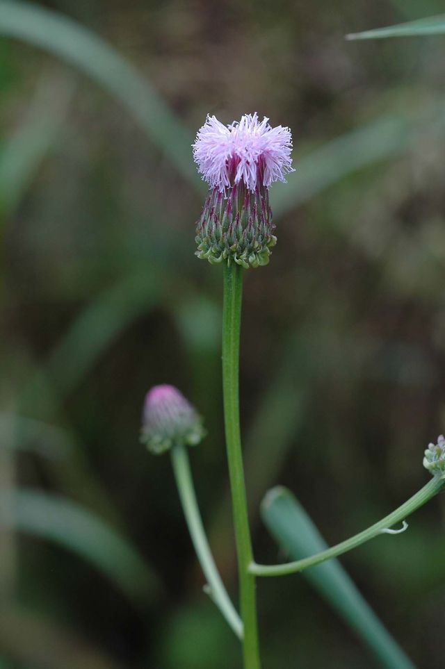 지칭개는 두해살이풀이다. 고도가 낮은 산지의 풀밭, 길가, 공터, 밭두렁에서 흔히 자란다. 한국 전역에서 쉽게 볼 수 있다. 특히 제주도와 남부지방에서 많이 발견된다. 중국, 일본, 인도, 동남아시아, 오스트레일리아 등 세계적으로도 널리 분포한다. 줄기는 곧게 서며 높이는 60~90cm에 달한다. 가지가 갈라지고 거미줄 같은 흰 털이 덮여 있다. 뿌리잎은 일찍 마른다. 줄기잎은 어긋나며 도피침형 또는 타원형이다. 길이는 5~6cm, 폭은 1~3cm다. 잎은 깃꼴로 깊게 갈라진다. 잎 뒷면에는 흰 솜털이 빽빽하게 난다. 꽃은 5~7월에 핀다. 줄기나 가지 끝에 머리모양꽃차례를 이루며 붉은 보라색 또는 분홍색 꽃이 피어난다. 열매는 수과로 7월에 익는다. 우산털이 달려 있다.