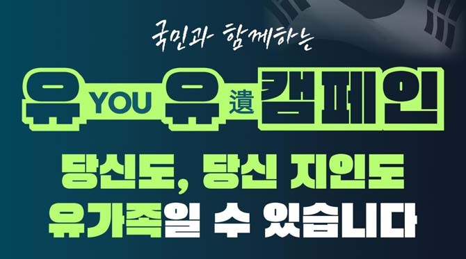 '유유캠페인'은 전 국민을 대상으로 6.25 미수습 전사자의 신원확인을 위한 유가족 유전자(DNA) 시료채취 동참을 호소하는 캠핀으로, '당신도(YOU), 당신의 지인도 유(遺)가족일 수 있다'는 의미가 담겼다.
