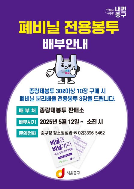 중구 관계자는 “폐비닐은 재활용이 가능한 자원”이라며 “폐비닐 분리배출을 통해 자원순환을 활성화하고 생활폐기물을 감량할 수 있도록 적극 협조해 주시기 바란다”고 당부했다.
