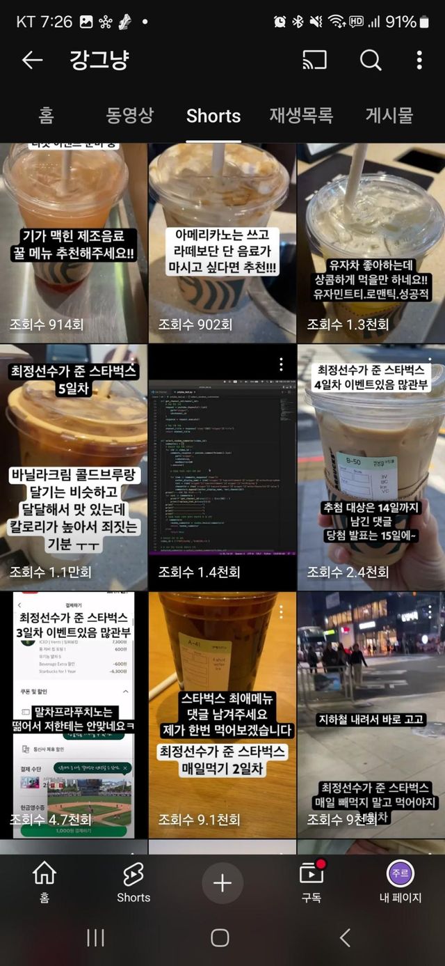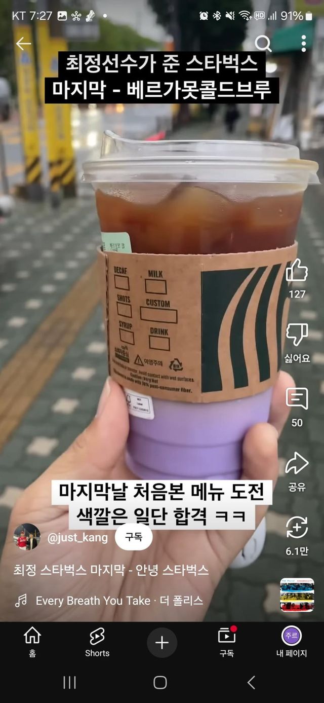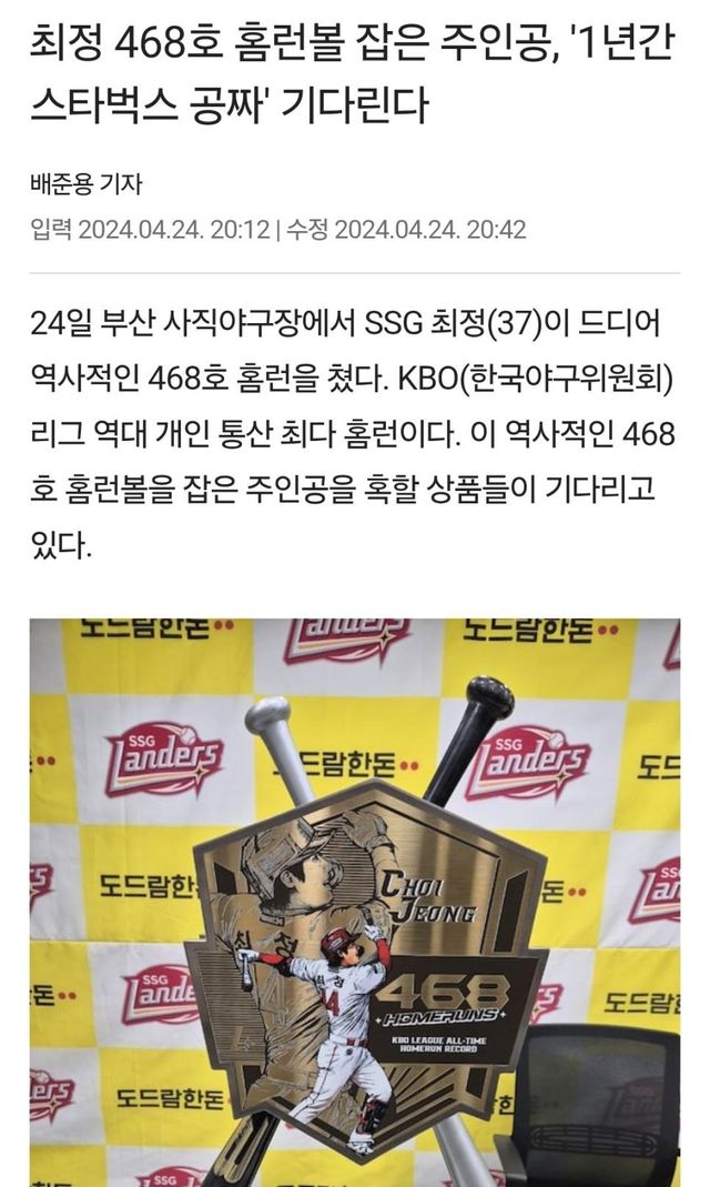 구단에게 볼 넘겨주는 댓가로 스타벅스1년 이용권을받았는데