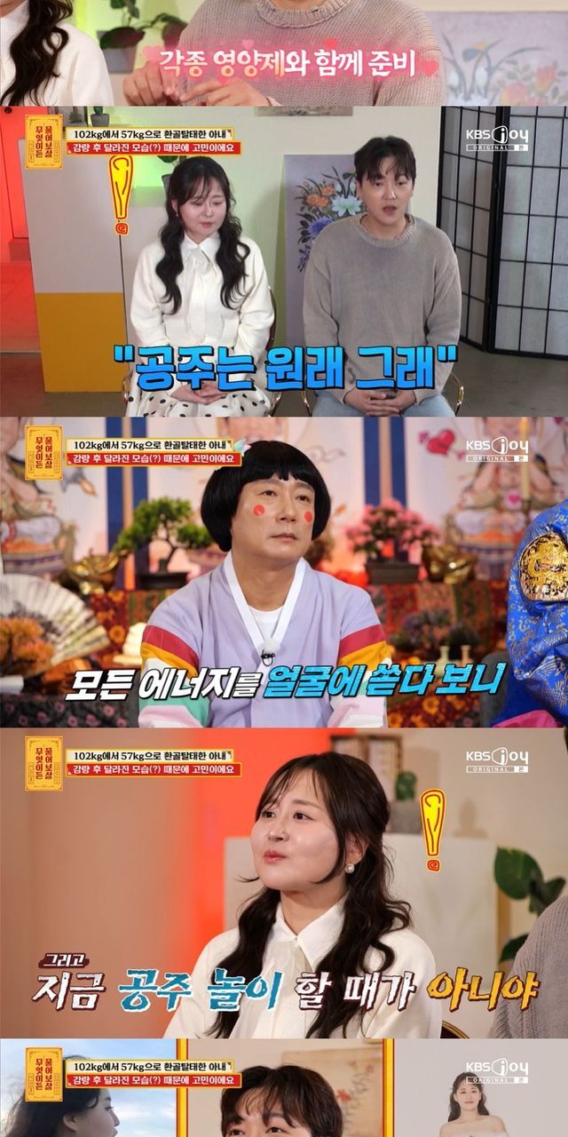 이날 사연자는 "아내가 원래 102kg였다", "현모양처처럼 잘 해줬는데 45kg을 빼고 나서 태도가 완전히 달라졌다"며 다이어트 성공 후 달라진 아내의 모습이 고민이라고 털어놨다.