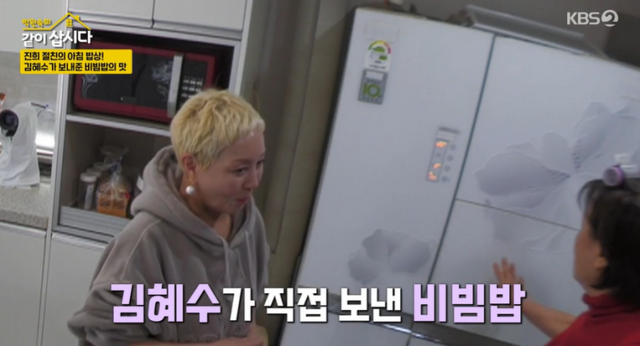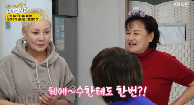 이날 박원숙은 홍진희와 윤다훈이 전등사에 다녀온 사이 비빔밥을 먹었고, 이를 들은 홍진희는 “그거 (김)혜수가 보내준 거야”라고 언급했다. 이어 홍진희는 “한 달에 한 번씩 나한테 식료품을 보내준다고 했잖아. 내가 강화도로 오던 날 새벽에 나한테 비빔밥을 보내줬다”고 말해 놀라움을 자아냈다.