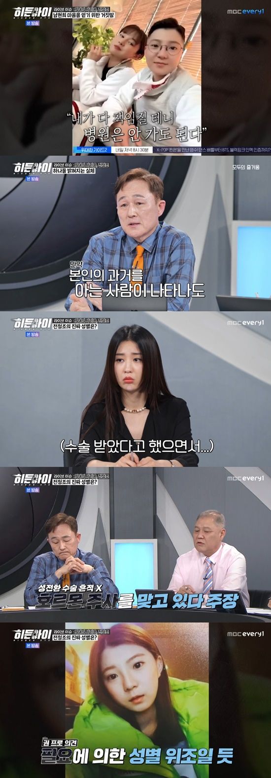 권일용은 "전청조가 태어날때부터 남자였는데 신체구조가 잘못태어났고 그래서 남성으로 성전환 수술을 받았다고 했다고 했다. 어릴 때 남자옷 입을 사진을 남현희에게 보내주기도 했다. 이 사진도 거짓이었다. 바로 동생사진을 쓴 것"이라고 설명했다.