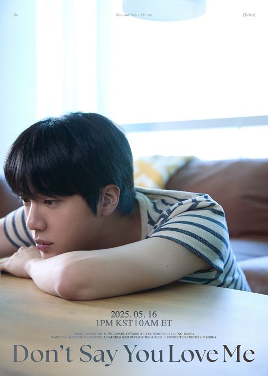진은 13일 0시 팀 공식 SNS에 미니 2집 '에코(Echo)'의 타이틀곡 '돈트 세이 유 러브 미(Don't Say You Love Me)' 뮤직비디오 포스터를 공개했다.