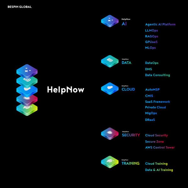 클라우드 부문은 베스핀글로벌의 클라우드 운영 경험을 AI와 결합한 AI 기반 클라우드 운영 자동화 솔루션 '헬프나우 AutoMSP', 프라이빗 클라우드 컨설팅과 구축, 운영을 위한 '헬프나우 프라이빗 클라우드', 서비스형소프트웨어(SaaS) 전환과 운영 자동화를 지원하는 '헬프나우 SaaS 프레임워크' 등으로 구성돼 클라우드 운영 효율성과 유연성을 동시에 강화한다.