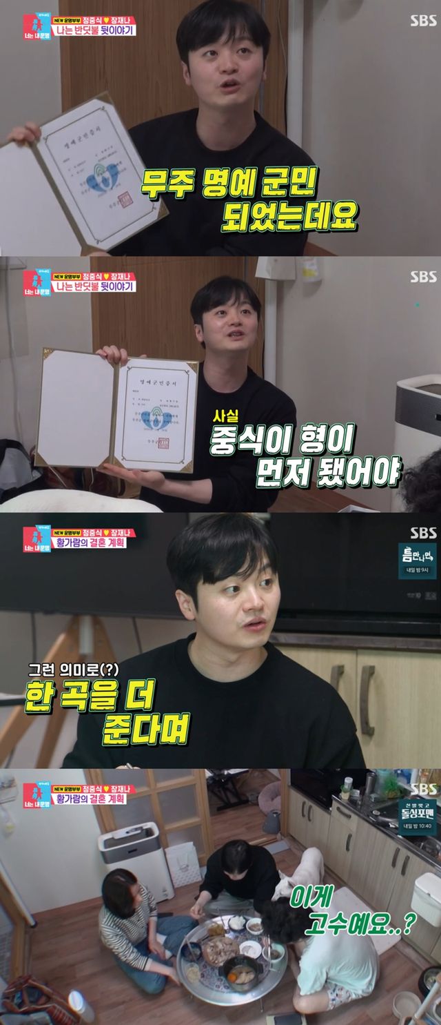 황가람은 지난 12일 오후 10시 10분 방송된 SBS ‘동상이몽2 - 너는 내 운명’에 출연해, 자신의 히트곡 ‘나는 반딧불’의 원곡자 정중식과 예비신부 장재나를 만나는 모습을 공개했다.