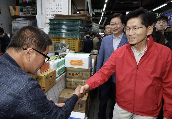 이날 김 후보는 상인 대표들과 아침 식사로 순댓국을 먹으며 애로사항을 청취하는 시간을 가졌다. 김 후보가 “장사는 좀 어떠냐”고 묻자 “최악”이라는 답변이 돌아왔다.