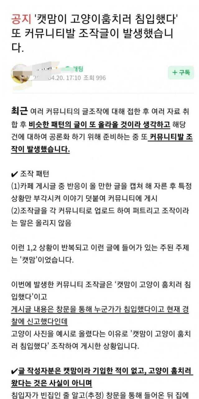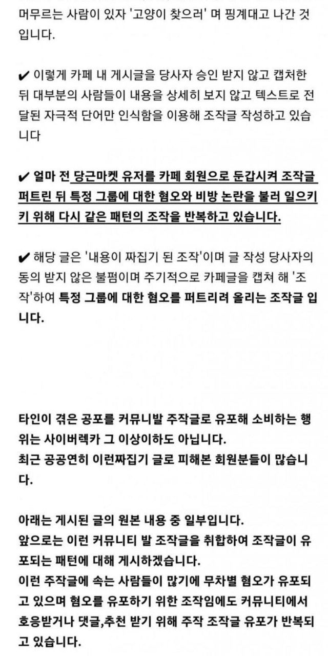 카페 주인피셜 '조작' 프레임 만들고 그들끼리 커뮤니티와 글쓴이를 욕했지만