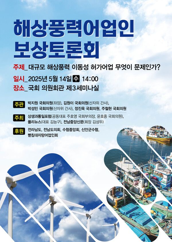 이에 해상풍력특별법 시행 이전에 현장의 어업보상 문제점 해소하기 위한 국회 토론회가 마련됐다.