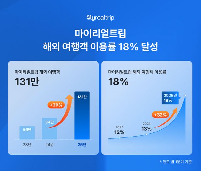 마이리얼트립은 올해 1분기 해외 출국자의 약 18%가 자사 플랫폼을 이용한 것으로 나타나, 역대 최고 수준의 성과를 기록했다고 13일 밝혔다. 이는 전체 출국자 740만 명 중 약 131만 명이 마이리얼트립을 통해 여행 상품을 예약한 것이다.