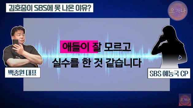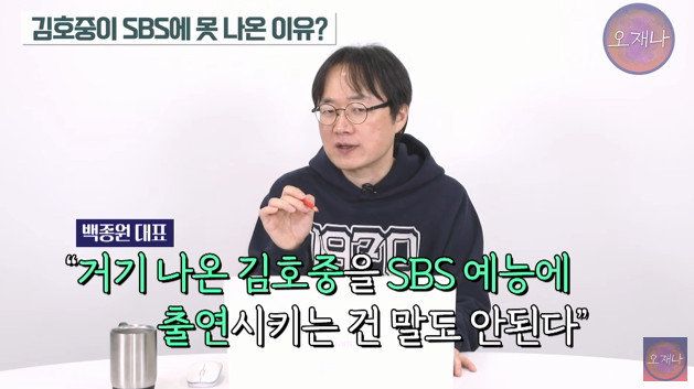 공개된 영상에는 ‘미스터트롯 김호중이 SBS에 못 나온 이유’라는 내용이 담겨있다. 해당 영상에서 김재환 PD는 “백종원 대표가 전화 한 통으로 ‘미스터트롯’ 출연자의 SBS 진출을 막은 이야기는 방송가에서 아주 유명한 이야기다”라고 운을 뗐다.