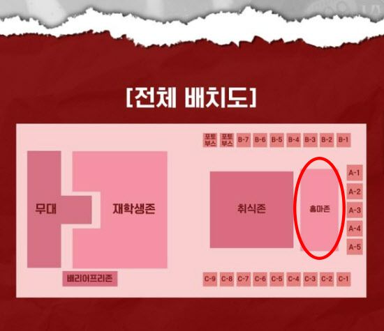 지난 8일 엑스 이용자 A씨는 한체대 측이 올린 축제 전체 배치도 사진을 올리고 “너무 웃기다. 뭘 찍으라는거냐”고 불만의 목소리를 냈다. 일부 이용자들도 “그냥 돈받고 취식존 앞에 만들어 주면 안되냐”, “취식존 보다 먼 이유를 모르겠다” 등의 반응으로 보였다.