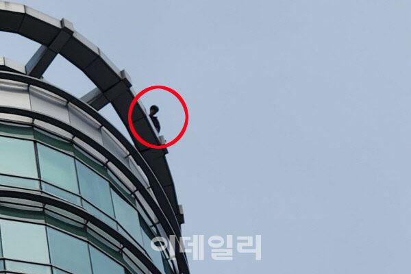 출동한 당국은 현재 해당 건물 옥상 난간에 매달린 사람을 구조하고 있다.